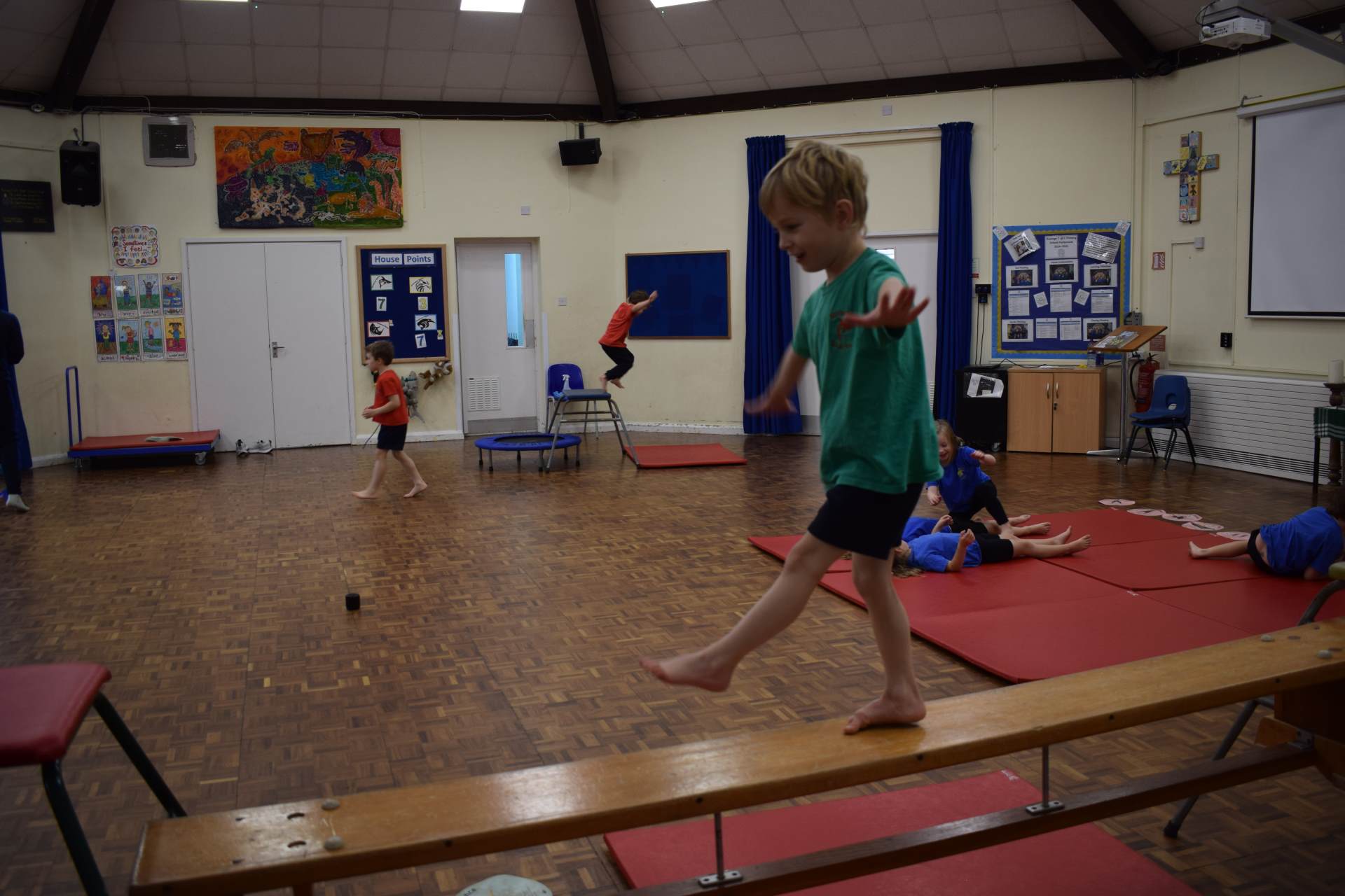 Each week, pupils have been learning how to balance, stretch and move with control, exploring different shapes such as tucked, star and straight shapes. They have also been practising safe jumping and landing, working on their coordination and confidence as they travel in different ways around the hall.