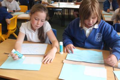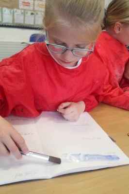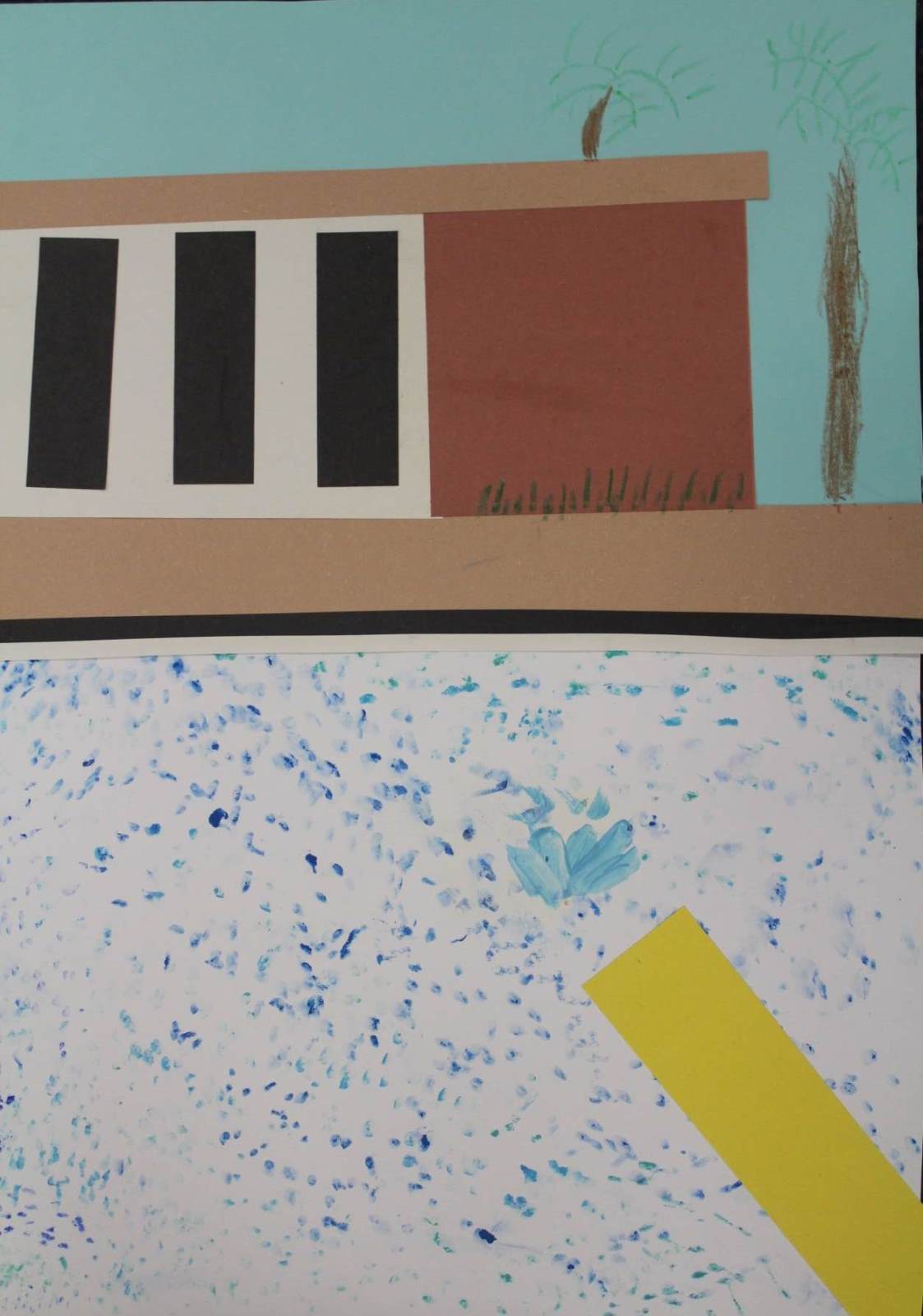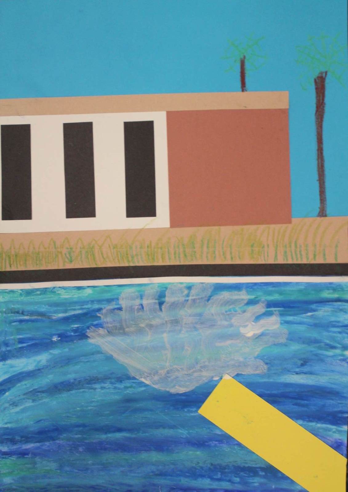 Class 4 have been looking at the British artist David Hockney and his painting A Bigger Splash. The children tried out different techniques to represent water before creating their own version of A Bigger Splash, choosing their preferred water technique for the pool and using collage for the buildings.