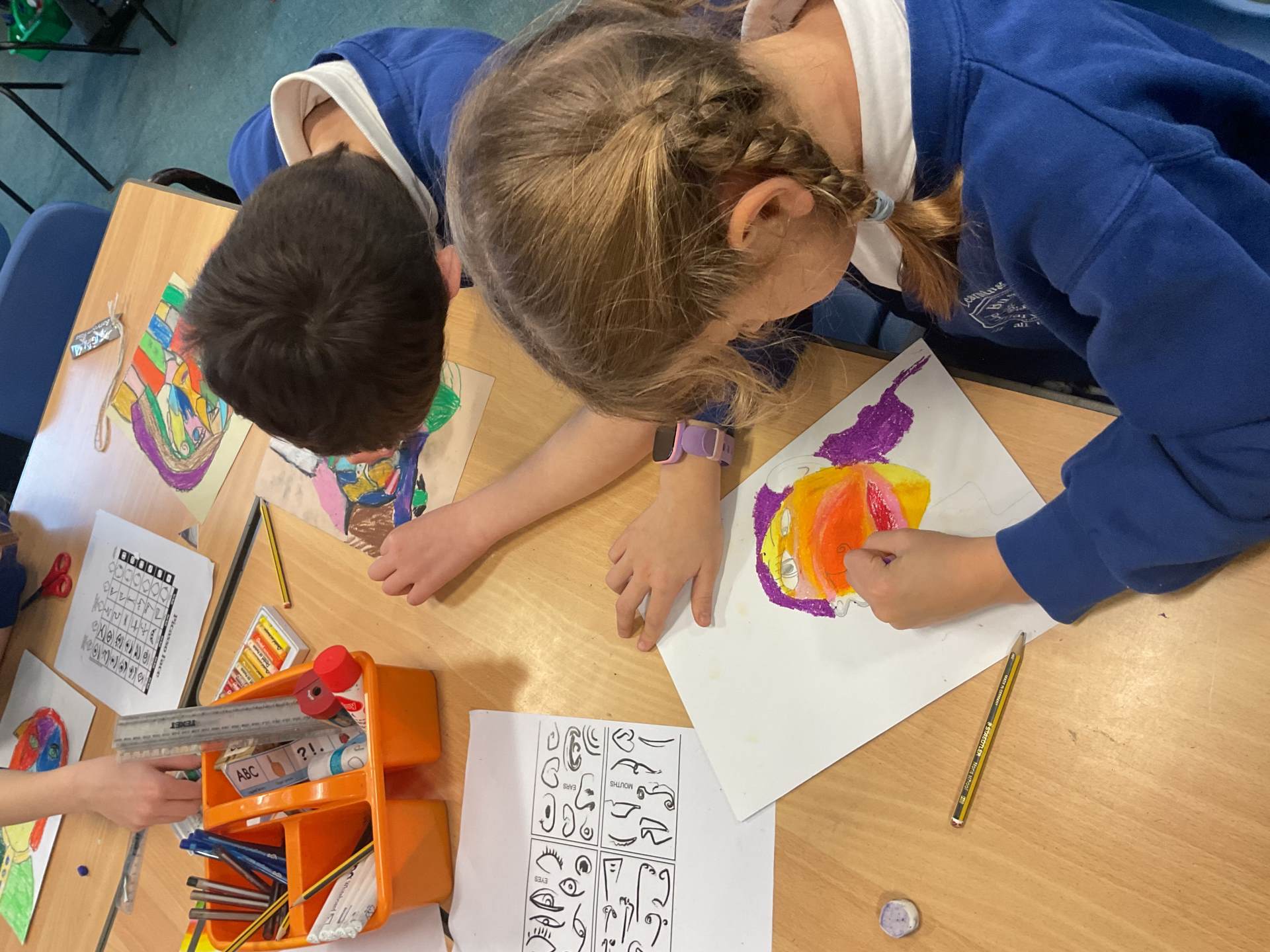 Year 5 have been studying the artist Picasso. They looked at his cubism style pieces and how his portraits were drawn from several angles. The pupils used photographs of themselves to produce their own self-portraits.
