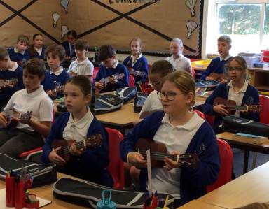 Class 6 have started learning the ukulele this term and are thoroughly enjoying developing this new skill. They have already learnt to play several pieces, including Ukulele Blues, The Tango, and It’s Raining, It’s Pouring. Alongside this, they have been exploring different types of musical notes and have also learnt their first chord, C. It is all great fun and we can't wait to learn more!