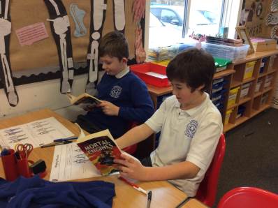 Class 6 had a fantastic time creating life-size skeletons. They began by researching the bones of the human body, then worked in groups to draw around one team member. Using careful measurements, they recreated the bones to build their own skeletons. Take a look at our classroom display below!