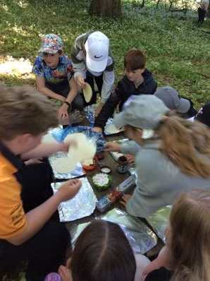 Once we arrived, the children toasted marshmallows over the fire and turned them into delicious s’mores. They then had time to build dens in the woods, which sparked lots of creativity and teamwork.