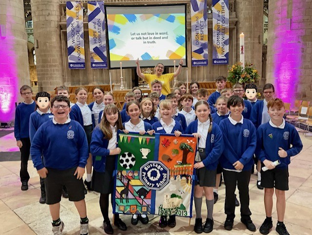 On Tuesday, 10th June, our Year 6 pupils visited Gloucester Cathedral for a special leavers' service celebrating Church schools across Gloucestershire. They represented our school admirably and thoroughly enjoyed being part of the extended church school community. The students participated in the service with great enthusiasm—singing along wholeheartedly and proudly showcasing our school banner. A particular highlight was the opportunity to perform with Jess from I Sing Pop.