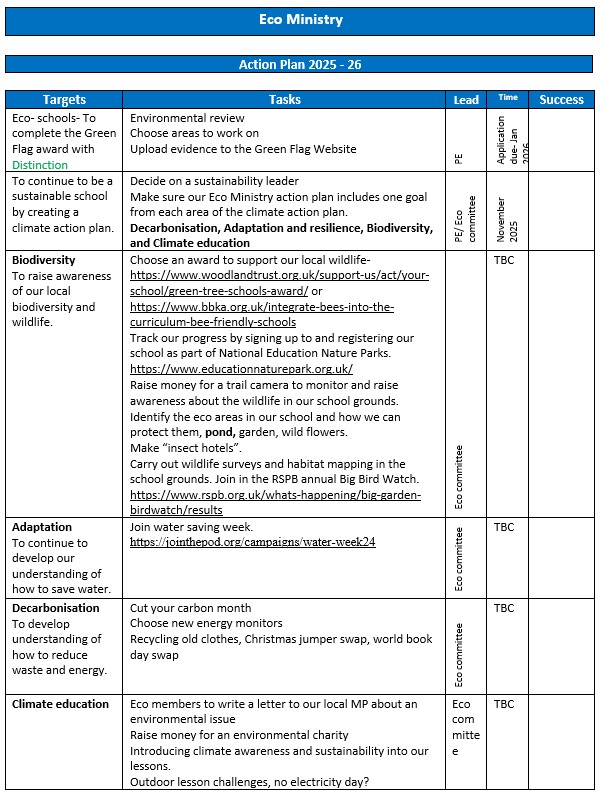 Eco Ministry have had a really productive year this year, culminating in achieving the prestigious Green Flag Award again with distinction.