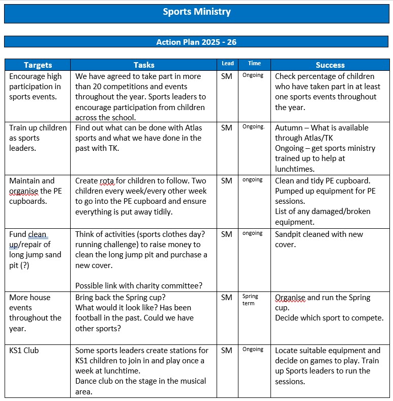 - Sports [Led by year 5 and 6] would like to invest in a new sandpit cover, so our sandpit can become less of a litter tray and more of a sports activity.