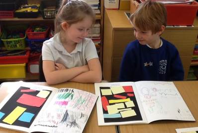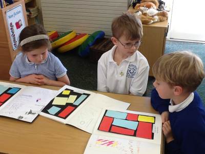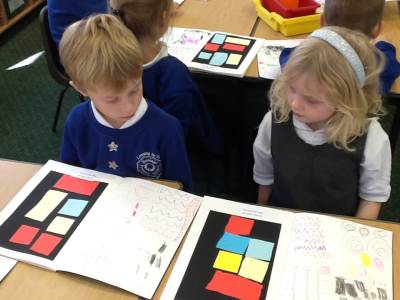 After exploring his work, the children got the chance to make their own Mondrian-inspired masterpieces! Using rulers and coloured paper, they created beautiful pieces of art by arranging rectangles and squares, and carefully choosing where to add their primary colours. The results were fantastic – bright, bold, and very creative!
