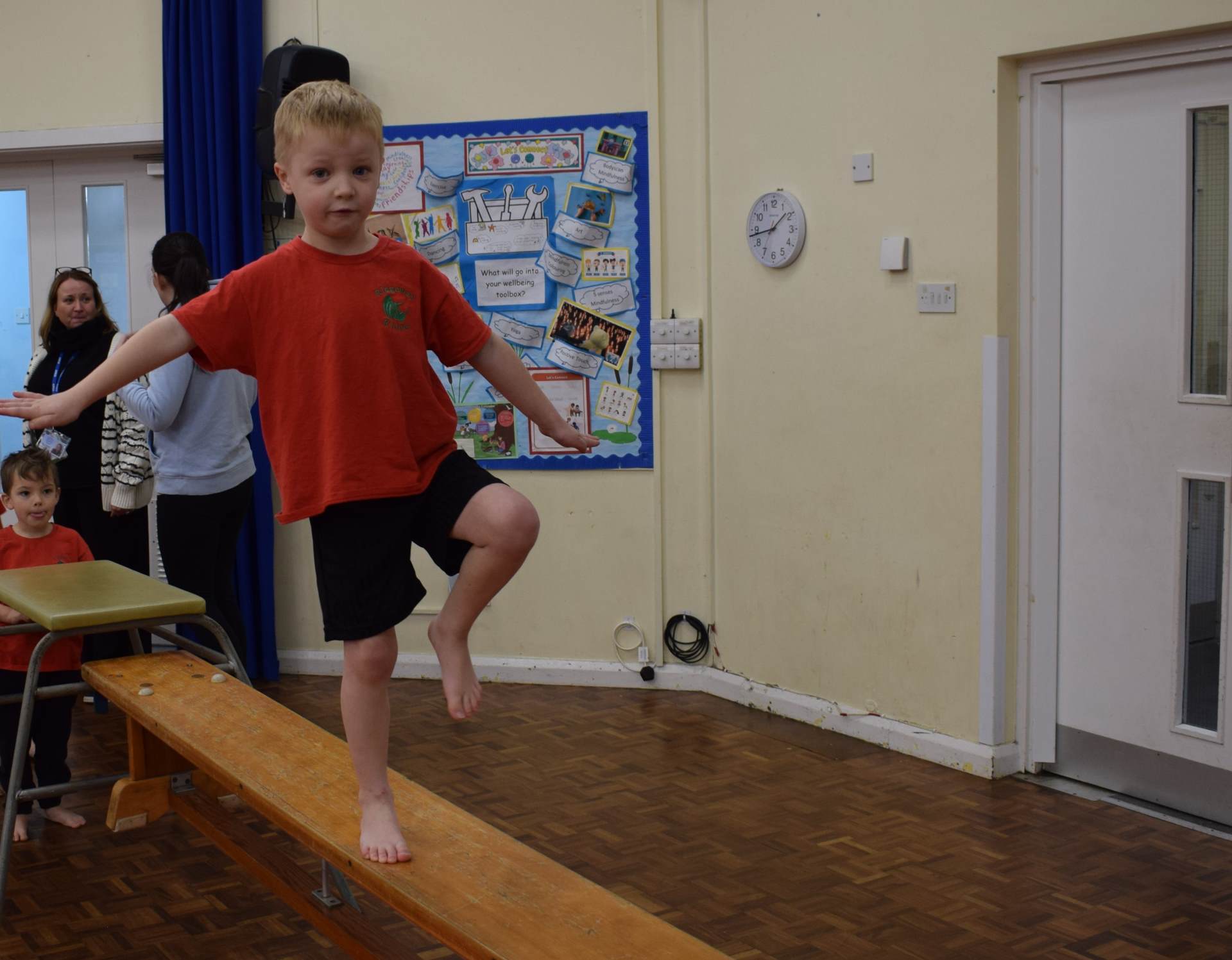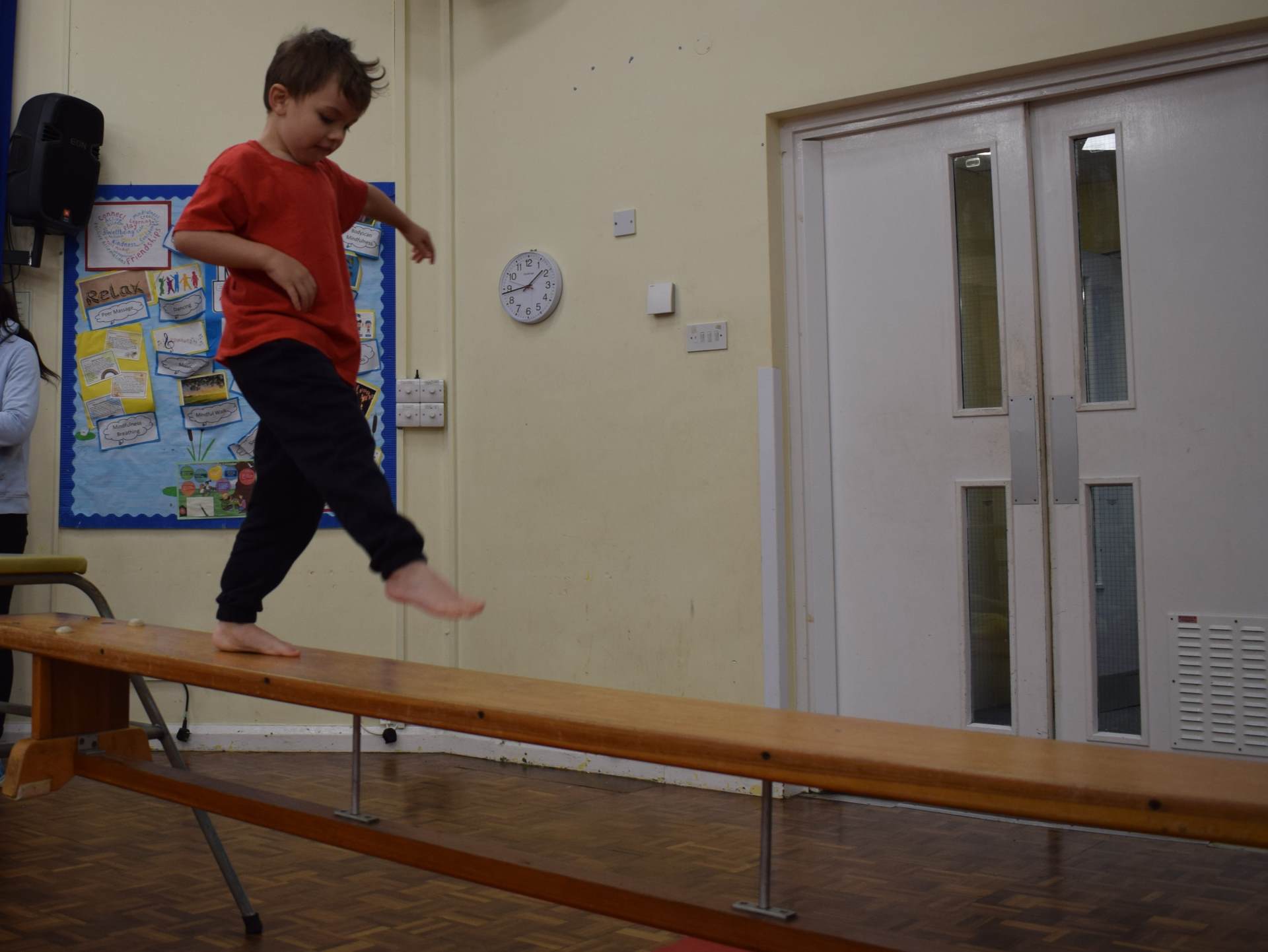 Balancing on one leg isn’t just fun, it helps the children to build core strength, coordination and concentration.
