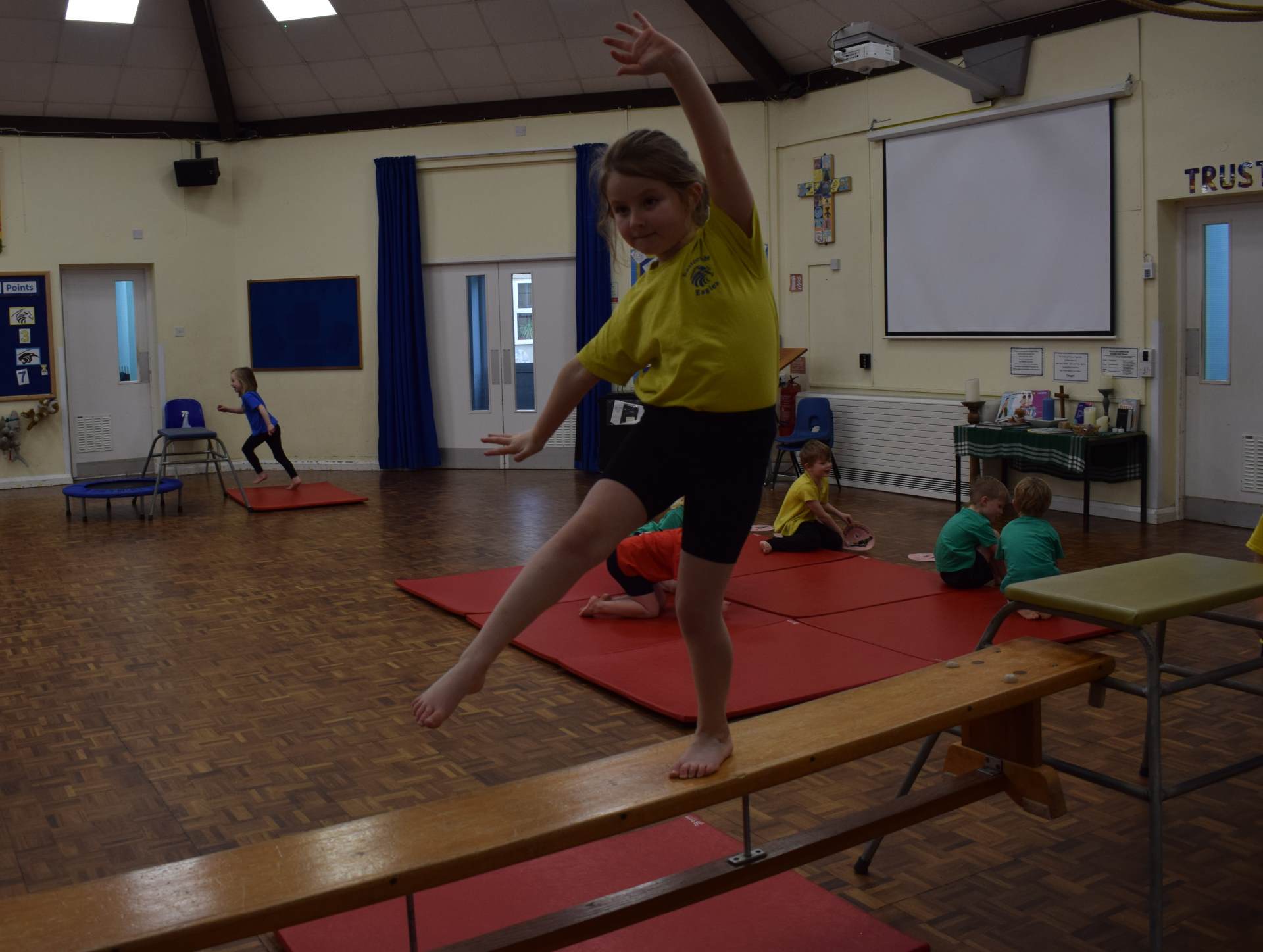 Each week, pupils have been learning how to balance, stretch and move with control, exploring different shapes such as tucked, star and straight shapes. They have also been practising safe jumping and landing, working on their coordination and confidence as they travel in different ways around the hall.