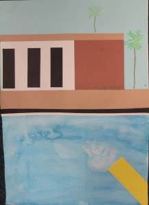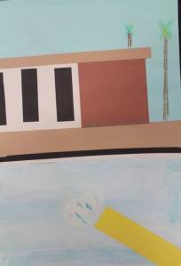 Class 4 have been looking at the British artist David Hockney and his painting A Bigger Splash. The children tried out different techniques to represent water before creating their own version of A Bigger Splash, choosing their preferred water technique for the pool and using collage for the buildings.