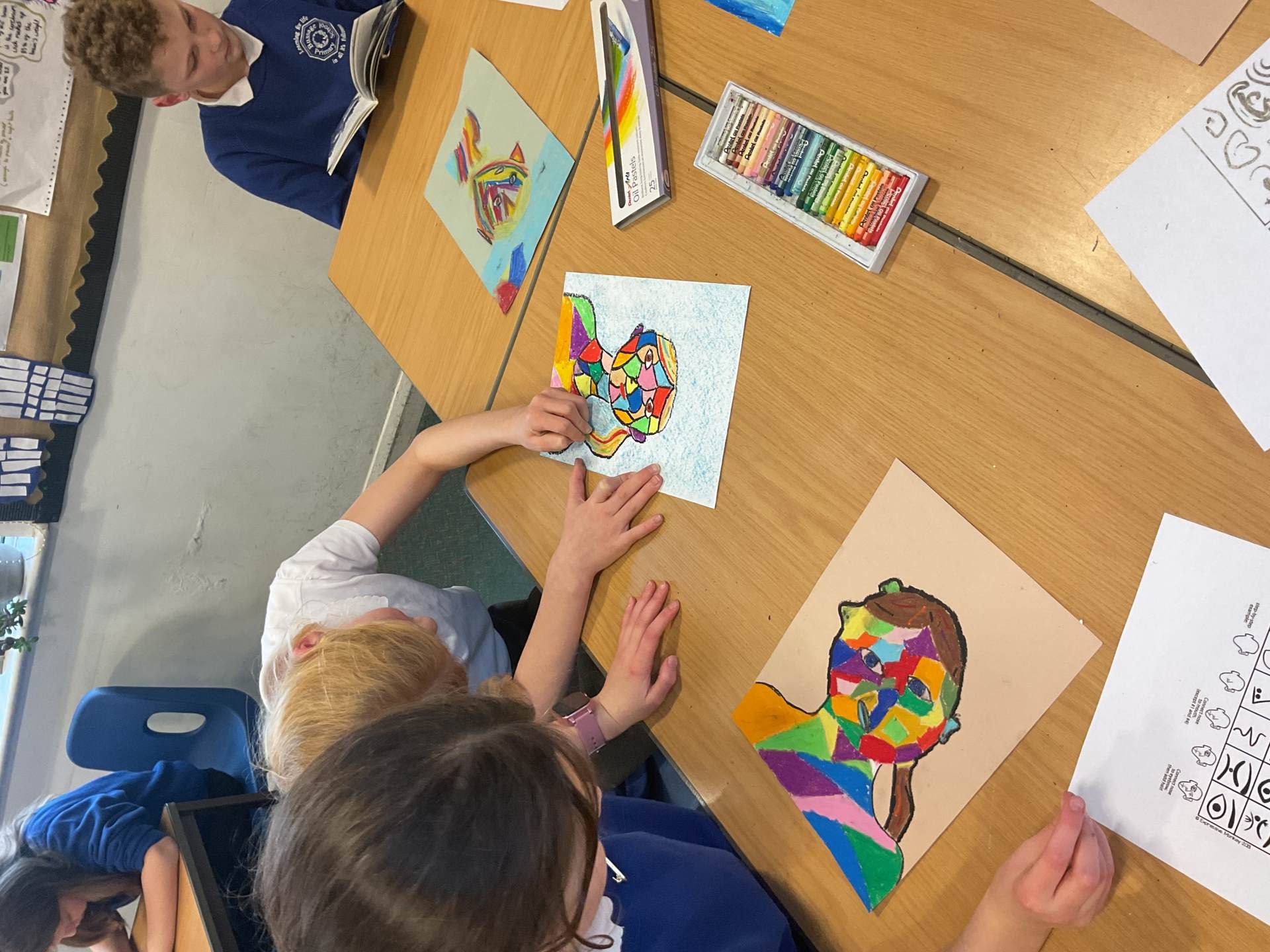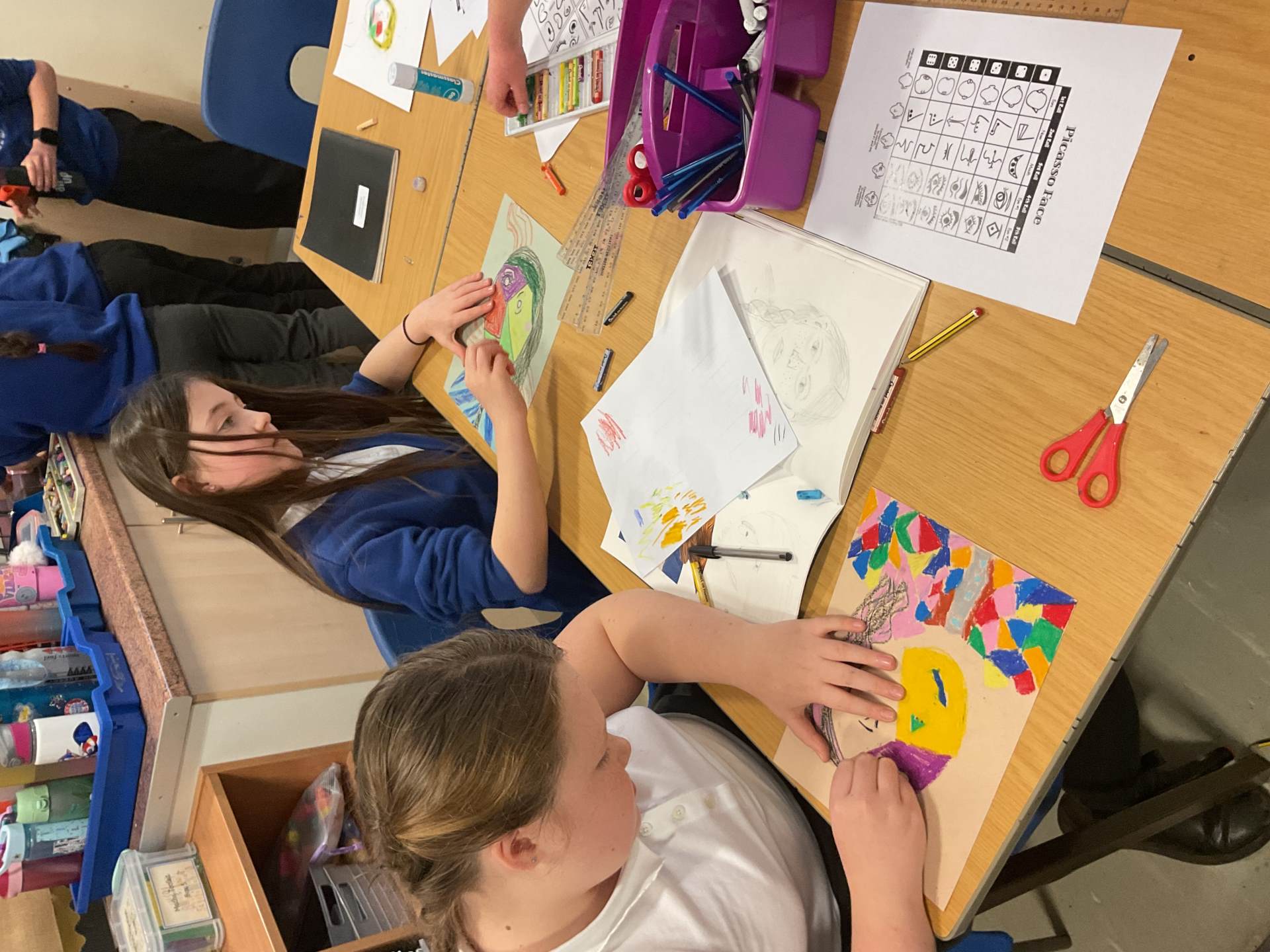 Year 5 have been studying the artist Picasso. They looked at his cubism style pieces and how his portraits were drawn from several angles. The pupils used photographs of themselves to produce their own self-portraits.