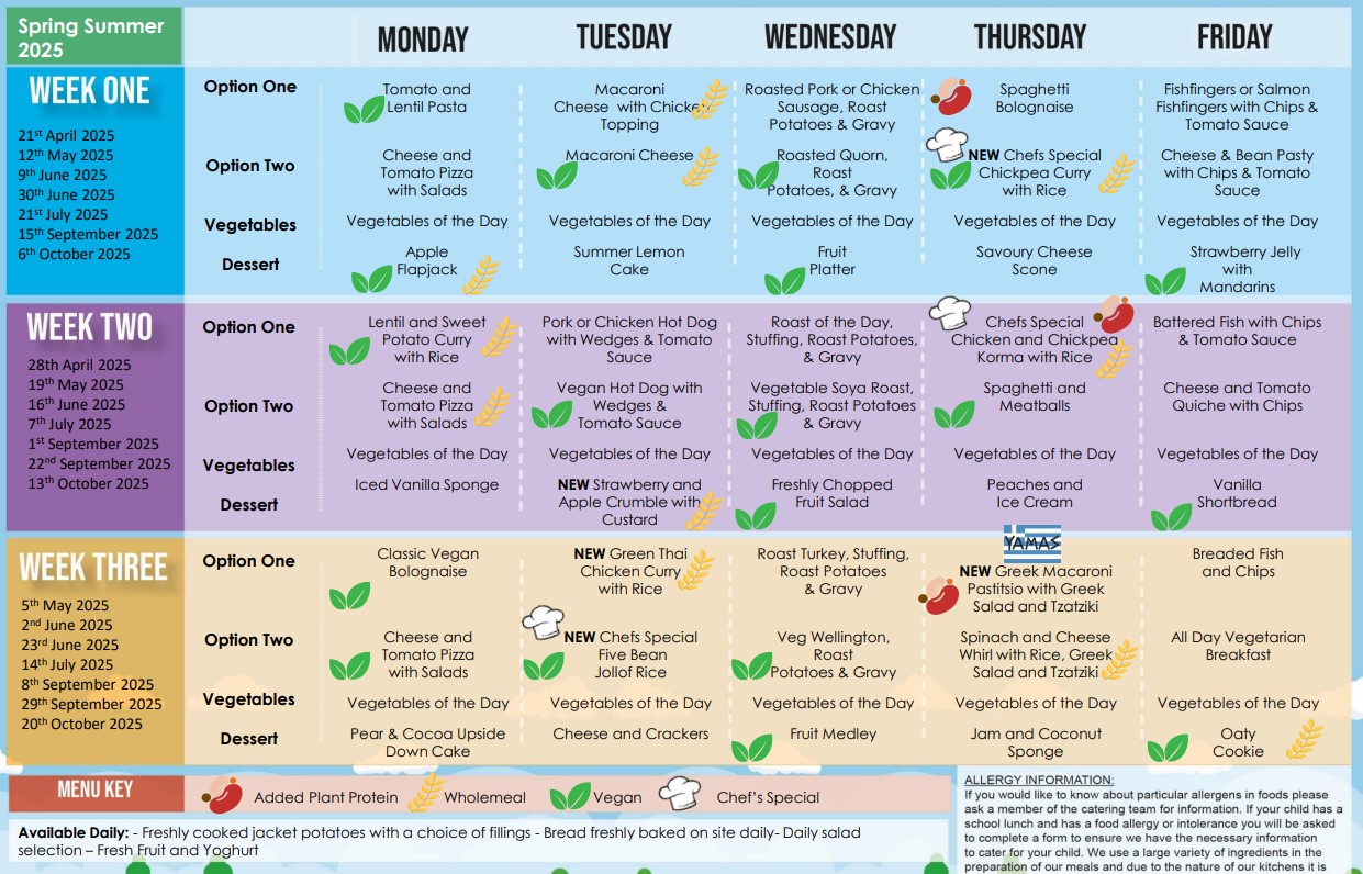 Our school meals are prepared onsite in our school kitchen by Caterlink.